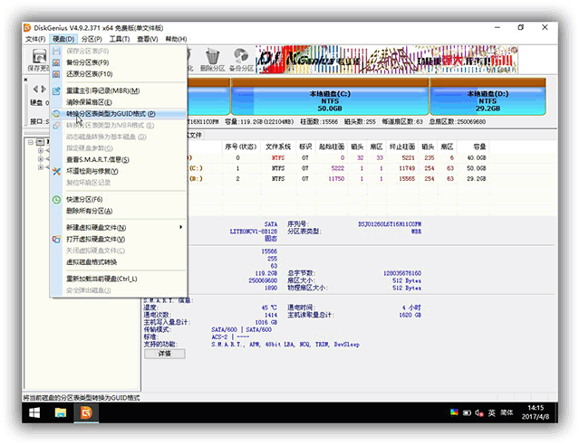 装机的技术人员经常给客户把预装WIN10的系统改WIN7,习惯性的把硬盘改成MBR的模式,由于现在的笔记本硬件越来越新,用WIN7经常出现毛病,所以又需要改回原版WIN10,所以就需要改硬盘格式。但是碰到客户电脑一堆资料的情况下又不能全盘格式。下面小编就利用diskgenius这个软件的来告诉大家修改方法.